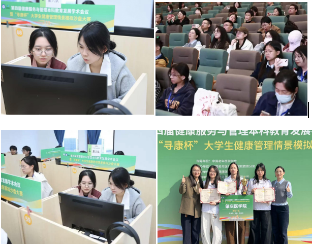 第四届“寻康杯”由中国老年医学学会院校教育分会主办、上海健康医学院承办,汇聚了来自北京中医药大学、浙江中医药大学、杭州师范大学等91所高校相关专业的四百余名师生同台竞技,是国内健康服务与管理领域唯一学科竞赛。大赛以“智管健康·沙盘竞弈”为主题, 设置健康管理方案设计、情景模拟沙盘、现场答辩展示与标准化病人实操模拟四个环节,考察学生健康评估、方案设计等综合能力,以赛促学培养专业人才。